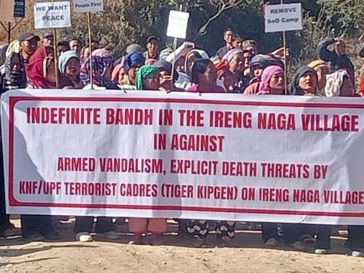 मणिपुर में शांति बहाल करने के लिए सुरक्षाबल सख्त अभियान चला रहे हैं। इससे बौखलाए कुकी उग्रवादी समूहों ने राज्य को एक बार फिर अशांत करने की साजिश शुरू कर दी है। कुकी उग्रवादियों न सेनापति जिले के नगा बहुल इरेंग नगा गांव में कुकी लैंड और दूर रहो लिखकर केंद्र और राज्य सरकारों को खुली चुनौती दी है। स्थानीय लोगों के मुताबिक बीते दिनों रात के समय अज्ञात हथियारबंद लोग गांव में दाखिल हुए और तोड़-फोड़ करते हुए मेमोरियल स्टोन पर नारा लिख दिया। गांव वालों ने थाने में एफआईआर दर्ज कराई है। इसके चलते क्षेत्र में नए सिरे से अशांति फैलने की आशंका गहरा गई है। खुद को टाइगर किप्गेन उर्फ थांग्बोई/हाउगेंथांग किप्गेन बताने वाले केएनएफ-पी के कमांडर ने गांव के चेयरमैन को फोन कर हत्या और पूरे गांव को जला देने की धमकी दी। चूराचांदपुर रोड किया ब्लॉक घटना के बाद नगा ग्रामीणों ने शनिवार को कंग्पोक्पी-चूराचांदपुर रोड को ब्लॉक कर दिया। लियांग्माई नगा काउंसिल और नगा पीपुल्स ऑर्गेनाइजेशन (NPO) ने जवाबी कार्रवाई की चेतावनी दी हैै। कई नगा संगठनों ने जॉइंट ट्राइबल बॉडीज के साथ मिलकर ट्रैफिक और ट्रेड ब्लॉकेड की धमकी दी है। मणिपुर में मई 2023 में मैतेई और कुकी-जो समुदायों के बीच जातीय हिंसा शुरू हुई थी। यह 2025 के शुरुआती महीनों तक जारी रही। हिंसा के दौरान कई इलाकों में आगजनी, लूट और हत्याओं की घटनाएं हुईं। हजारों लोग विस्थापित हुए और राहत शिविरों में रहने को मजबूर हुए। हिंसा के बाद मुख्यमंत्री एन बीरेन सिंह ने इस्तीफे दे दिया था। केंद्र ने मणिपुर में राष्ट्रपति शासन लागू किया है। 4 पॉइंट्स में समझिए मणिपुर हिंसा की वजह... मणिपुर की आबादी करीब 38 लाख है। यहां तीन प्रमुख समुदाय हैं- मैतेई, नगा और कुकी। मैतई ज्यादातर हिंदू हैं। नगा-कुकी ईसाई धर्म को मानते हैं। ST वर्ग में आते हैं। इनकी आबादी करीब 50% है। राज्य के करीब 10% इलाके में फैली इंफाल घाटी मैतेई समुदाय बहुल ही है। नगा-कुकी की आबादी करीब 34 प्रतिशत है। ये लोग राज्य के करीब 90% इलाके में रहते हैं।