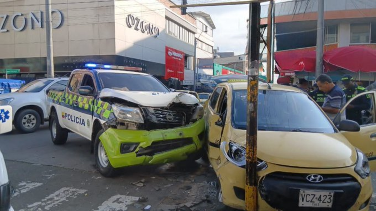 Una patrulla de Policía y un taxi se estrellaron en Cali, dejando dos heridos: el caso está bajo investigación; ¿hubo invasión del carril del MIO?