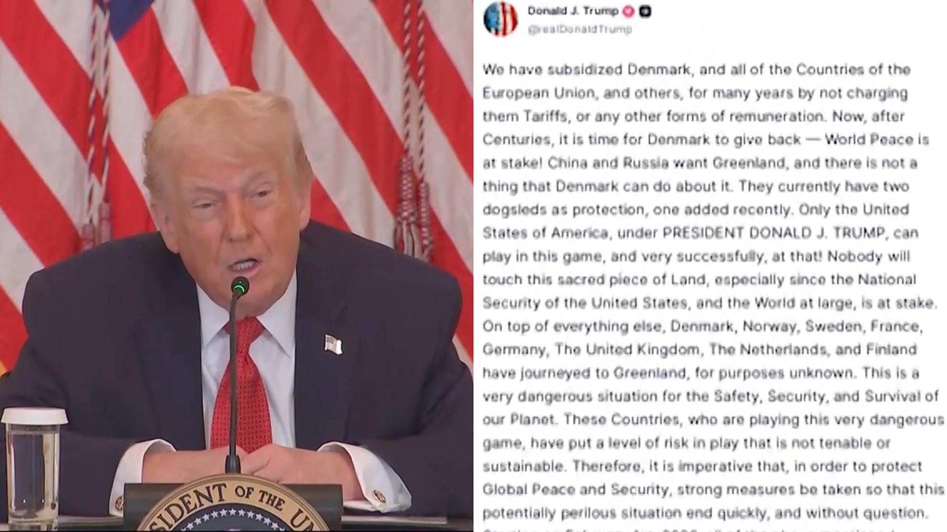 도널드 트럼프 미국 대통령이 미국의 그린란드 병합 의사에 반하는 유럽국가들을 상대로 다음달 1일부터 10% 관세를 부과하겠다고 밝혔습니다. 트럼프 대통령은 현지시간 17일 SNS를 통해 덴마크 등 국가들이 목적도 확실하지 않은 상태에서 그린란드로 향했다며 이같이 말했습니다. 이들 국가엔 다음달 1일부터 10%에 더해 오는 6월부터는 관세를 25%까지 부과하겠다고도 했습니다. 최근 덴마크 자치령인 그린란드에 대해 미국이 군사행동 가능성까지 ...