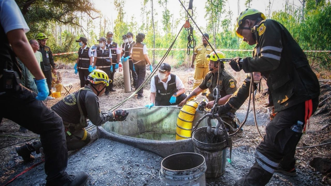 กู้ภัยฯ นำร่าง “ครูเล็ก” ซึ่งถูกหลานฆ่า ทิ้งบ่อร้าง ลึก 20 เมตร เทหินคลุกทับได้สำเร็จ สภาพเน่าเปื่อย นำส่งชันสูตร ก่อนตั้งบำเพ็ญกุศลพร้อม “ครูแหม่ม” พี่สาว ตร. ไม่ปักใจเชื่อลงมือคนเดียว