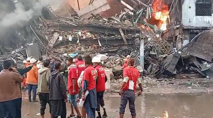KARACHI: Part of Gul Plaza building collapsed on Sunday due to a fire that is raging for around nine hours, with rescue and relief efforts underway, said the rescue officials. The fire, which erupted at around 10:15pm on Saturday night, has so far resulted in five fatalities with more...