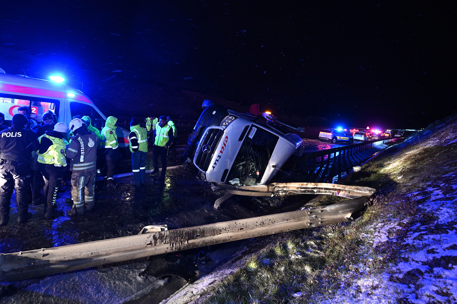 Kuzey Çevre Otoyolu'nda servis minibüsü devrildi 11 kişi yaralandı