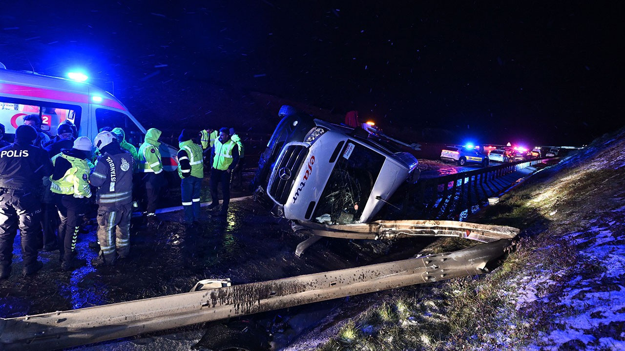 Kuzey Çevre Otoyolu'nda servis minibüsü devrildi: 11 yaralı