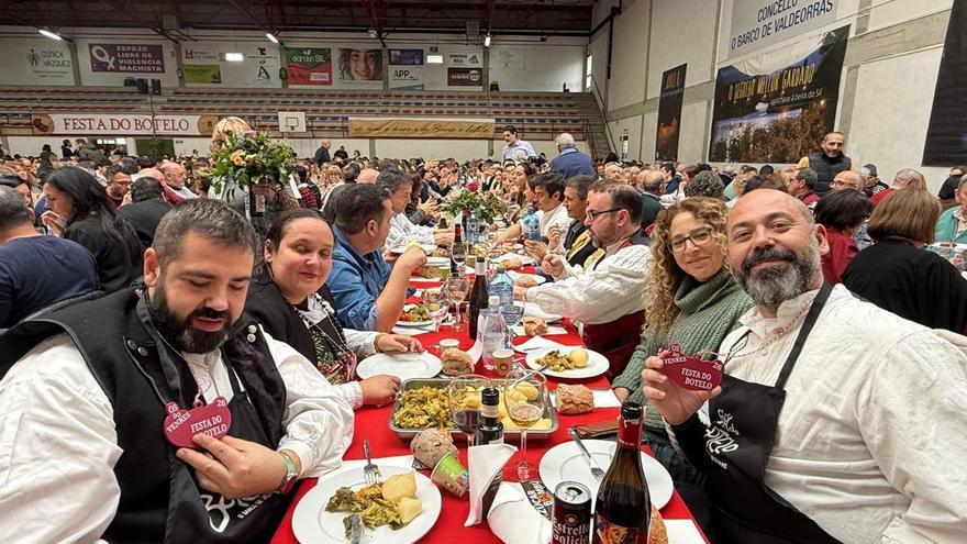 La XXIV Festa do Botelo do Barco reunió este año a cerca de 1.300 comensales en el Pavillón Polideportivo de Calabagueiros, donde se celebró el almuerzo oficial de este evento gastronómico, declarado Festa de Interese Turístico Galego. A esa cifra se sumaron, según la organización, unas 800 personas más que este mediodía ocuparon las plazas disponibles en los restaurantes de la localidad que durante el fin de semana ofrecen botelo en su menú.