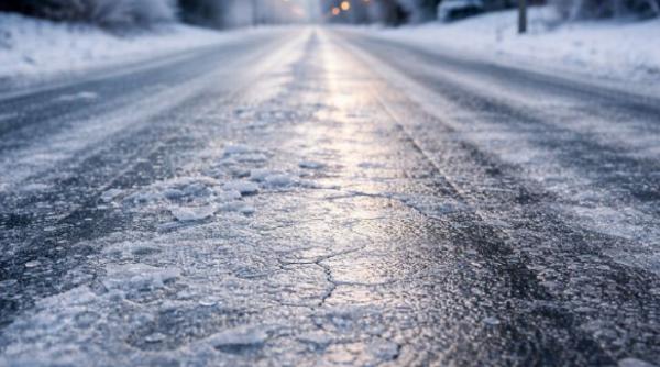Șosea acoperită cu gheață în Vaslui, după o avarie la conducta de apă