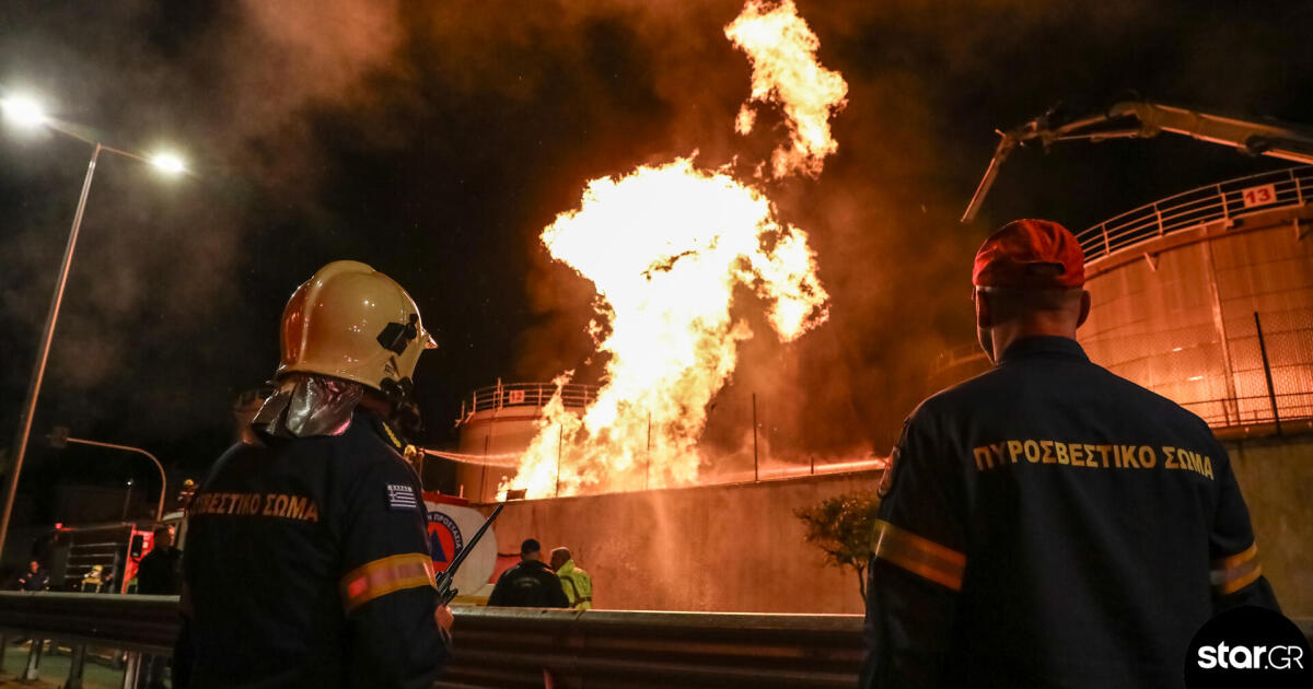Συναγερμός στο Πέραμα από μεγάλη φωτιά κοντά σε δεξαμενές καυσίμων. 48 πυροσβέστες, μήνυμα 112, κυκλοφοριακές ρυθμίσεις και εκτεταμένες ζημιές.
