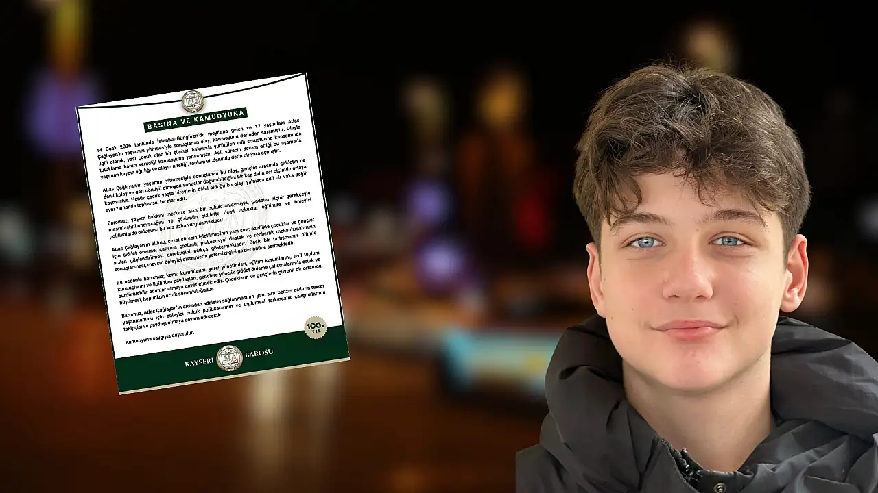 Kayseri Barosu Başkanlığı, İstanbul'un Güngören ilçesinden meydana gelen ve 17 yaşındaki Atlas Çağlayan'ın hayatını kaybetmesi ile sonuçlanan olay ile ilgili açıklama yaptı. Yaşanılanların adli bir olaydan öte toplum vicdanında derin bir yara açtığı belirtildi. Detaylar Kayseri Anadolu Haber'de...