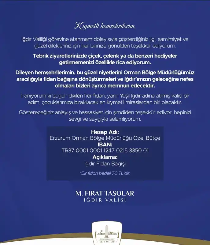 vali taşolar’dan tebrikler için anlamlı çağrı: "çiçek yerine fidan bağışı"