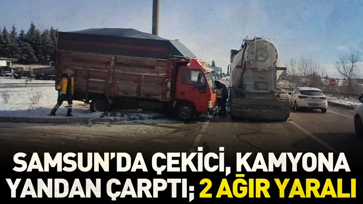 Samsun'da çekici, kamyona yandan çarptı; 2 ağır yaralı