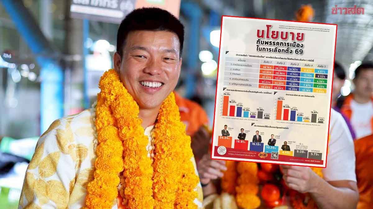 ดุสิตโพล ชี้ ปชน. มาแรง คะแนนพุ่ง ‘เท้ง’ ครองอันดับ 1 ประชาชนหนุนนั่งนายกฯ