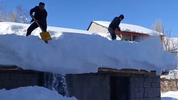 Hakkari'de kar kalınlığının 2 metreye aştığı 2 bin 44 rakımlı Boybeyi köyünde yaşayanlar, birbirlerine yardım ederek evlerin çatılarındaki karları temizledi.