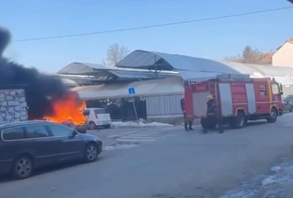 DRAMA U ŠAPCU: Zapalio se automobil na pijaci, nadvio se gust crni dim (VIDEO)