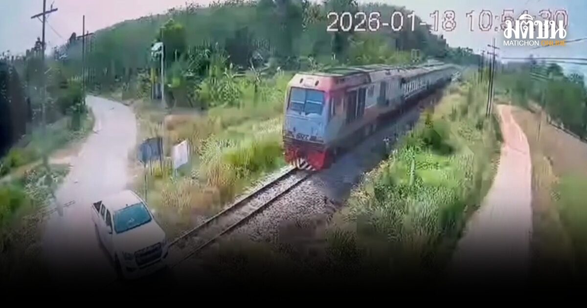 สลด กระบะจอดบนรางรถไฟ โดนรถไฟปาดังเบซาร์-หาดใหญ่ ชนเต็มๆ เสียชีวิต 1 บาดเจ็บ 1