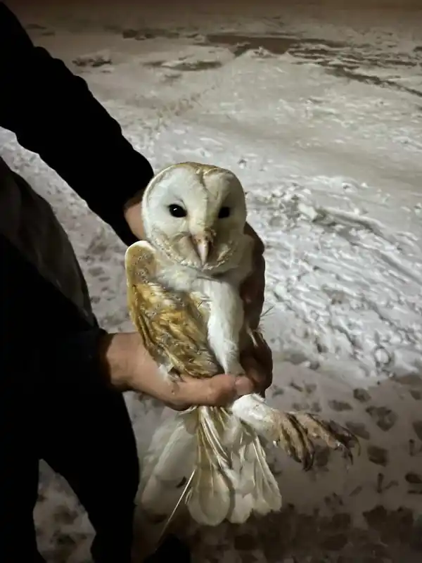 Peçeli baykuş soğuktan ahıra sığındı