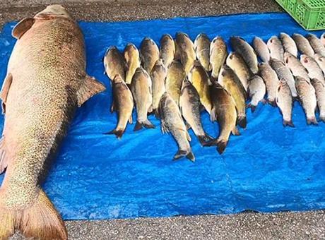 Elazığ’da amatör balıkçılar, Murat Nehri’nde 52 kiloluk dev bir turna balığı yakaladı. Yakaladığı dev turnayı kıyıya çıkaran balıkçılar, daha sonra balık işletmesine getirerek satışa çıkardı. Et halinde kilosu 500 liradan satışa çıkan balık, alıcılarını bekliyor. Balıkçı İbrahim Bal, "1 saat önce arkadaşlar Murat Nehri’nden getirdiler. 52 kilogram ağırlığında. Bunu et olarak doğrayıp satacağız. Etinin kilosu 500 liradan olacak. Ben 40 senedir bu işi yapıyorum daha önce böyle güzel balık görmedim. Bunu kestikten sonra doğrayıp et halinde satacağız. Etin kilosu 500 lira, vatandaş da ona göre alır" dedi.