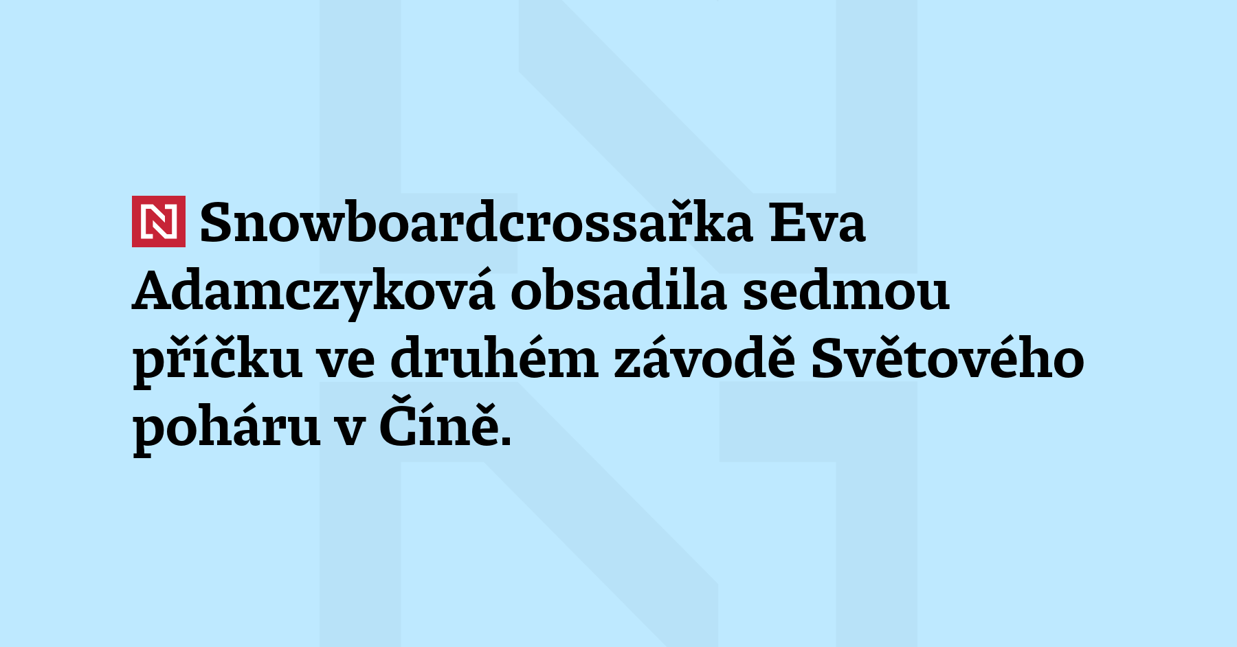 Snowboardcrossařka Eva Adamczyková obsadila sedmou příčku ve druhém závodě Světového poháru v Číně. Olympijská vítězka ze Soči 2014 Adamczyková si tak dnešním výsledkem definitivně zajistila účast na letošních Zimních olympijských hrách v Miláně a Cortině d’Ampezzo. (iDnes)