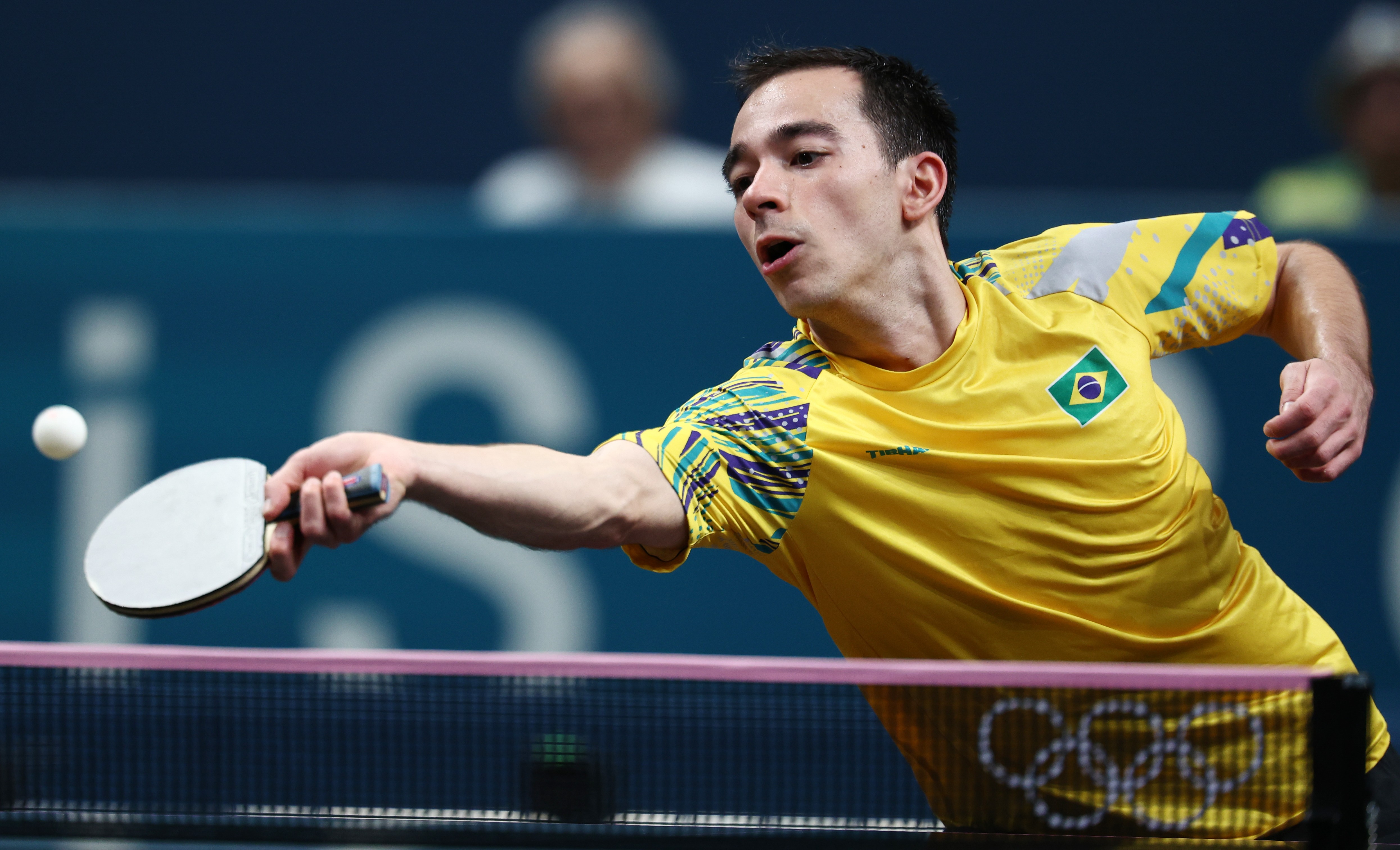 O brasileiro Hugo Calderano, de 29 anos, perdeu neste domingo a semifinal do World Table Tennis Star Contender, realizado em Doha, no Catar. Seu adversário, Wen Ruibo, promessa chinesa de 19 anos, venceu por 3 sets a 2 (11/9, 8/11, 11/9, 9/11 e 11/9) e agora irá enfrentar o compatriota Zhou Qiaho na final do torneio, logo mais. Paralisação: Boleira passa mal com calor e desmaia em quadra no Australian Open Adversário do Palmeiras: Pela primeira vez nas quartas da Copinha, Ibrachina é destaque em jornal espanhol: 'Uma das surpresas mais agradáveis' Terceiro no ranking mundial, Calderano foi derrotado pelo 53º. O chinês que o venceu, no entanto, vem de duas pratas e uma semifinal nos últimos mundiais sub-19. Este ano, é a primeira vez de Ruibo jogando um Star Contende. Até então, só havia jogado o WTT Youth Contender, voltado para os jovens. Em sua estreia na temporada, o brasileiro, atual campeão da Copa do Mundo e vice-campeão mundial, perdeu para o alemão Dimitrij Ovtcharov, 29º no ranking, no WTT Champions, também no Catar, há dez dias. O adversário tem no currículo seis medalhas olímpicas.