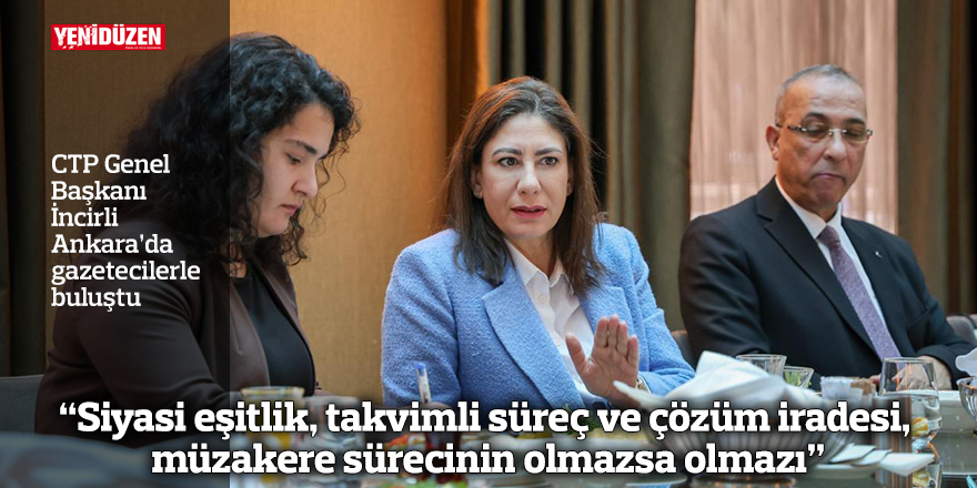 “Siyasi eşitlik, takvimli süreç ve çözüm iradesi, müzakere sürecinin olmazsa olmazı” Cumhuriyetçi Türk Partisi (CTP) Genel Başkanı Sıla Usar İncirli, Ankara’da gazetecilerle bir araya geldi.
