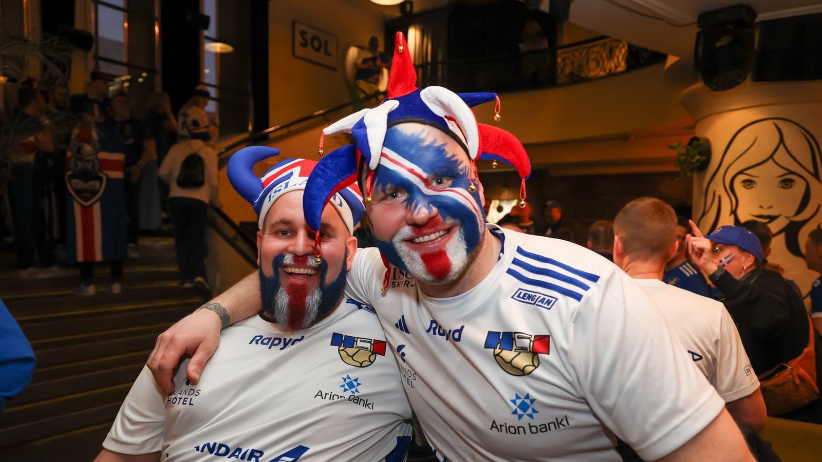 Stuðningsfólk íslenska landsliðsins í handbolta hitar vel upp á stuðningsmannasvæðinu, Fan Zone, í Kristianstad fyrir leik dagsins við Pólland.