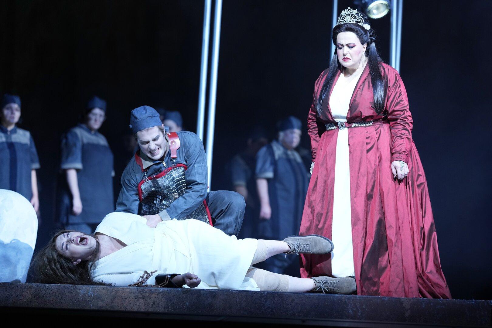 von Helmut Christian Mayer Übersät von großen, bleichen Totenschädeln ist die düstere Bühne mit ihren rostbraunen Wänden. Fleischerhaken hängen von der Decke. Wie der Innenraum eines Schlachthauses wirkt das fast zu schmucklose, nüchterne und vor allem eiskalte Ambiente von Giacomo Puccinis „Turandot“ am Linzer Landestheater. Passend dazu ist das Volk einheitlich mit blauen Monturen und Kappen ausstaffiert, die an die früheren Uniformen des kommunistischen Chinas erinnern. Ping, Pang, Pong tragen glitzernde Schürzen, wie Fleischhauer und teils blutige Henkerbeile. Der Kaiser ist in schlichtem Schwarz gekleidet, Liù ganz in Weiß, nur die Titelheldin ist prunkvoll mit einer Krone und einem weißen Kleid mit rotem Samtumhang ausstaffiert, alles auf farbliche Symbolik abgestimmt (Mechthild Feuerstein). Eine omnipräsente, riesige Mondscheibe, die einmal umgedreht zu einer metallischen Gongscheibe wird, dominiert die Szene (Bühne: Paul Zoller). Bei suggestiven Lichtstimmungen erzeugt Regisseurin Jasmina Hadžiahmetović eine durchdachte, detaillierte Personenführung, insbesondere bei der Gefühlswelt der Protagonisten und lässt die letzte Oper nicht zum Happyend werden, denn Turandot verlässt deprimiert seitlich die Bühne, während Calaf völlig ratlos zurückbleibt. Statt dem sonst meist gespielten Finale von Franco Alfano wird in Linz bei der unvollendet gebliebenen Oper das neue von Luciano Berio von 2002 nachkomponierte aufgeführt, das sich mehr auf Puccinis Skizzen stützt und diese mit zeitgenössischer Musiksprache mischt. Reinhard Winkler Tödliche Rätsel Musikalisch hat diese Produktion viel zu bieten: Elena Batoukova-Kerl ist eine hochdramatische und stolze, kalte Prinzessin mit tödlichen Rätseln. Sie verfügt über enorme Durchschlagskraft und schafft die schwere dramatische Partie mit wagnerischen Anforderungen an Umfang und Tonsprüngen sowie blitzenden Spitzentönen mühelos. Nicht nur mit dem Hit „Nessun dorma“ kann Carlos Cardoso als Calaf punkten, denn sein Volumen ist auch sonst immer durchschlagskräftig, mühelos und höhensicher. Erica Eloff ist eine wunderbare Liù mit zarten, lyrischen und innig schattierten Tönen. Vor allem ihre Sterbeszene geht unter die Haut. Der Timur des Dominik Nekel klingt kernig. Da singt ein Ministertrio, jene Modernisierung der alten Figuren der „commedia dell’arte“ Ping (Alexander York), Pang (Jonathan Hartzendorf) und Pong (Victor Campos Leal) gut aufeinander abgestimmt. Gut sind auch Christian Drescher als Kaiser und Gregorio Changhyun Yun als Mandarin zu hören. Stimmgewaltig und fast immer konform mit dem Graben singen Chor, Extrachor und Kinderchor des Landestheaters. Großen Anteil am musikalischen Erfolg haben auch Enrico Calesso und das Bruckner Orchester Linz. Hier werden raffinierte Koloristik, feine aber auch eruptiv dynamische Schattierungen packend ausgereizt. Puccinis Partitur wird delikat und feinschillernd mit exotischen Klangwirkungen umgesetzt. Stehende Ovationen und ein paar Buhs für das Inszenierungsteam!