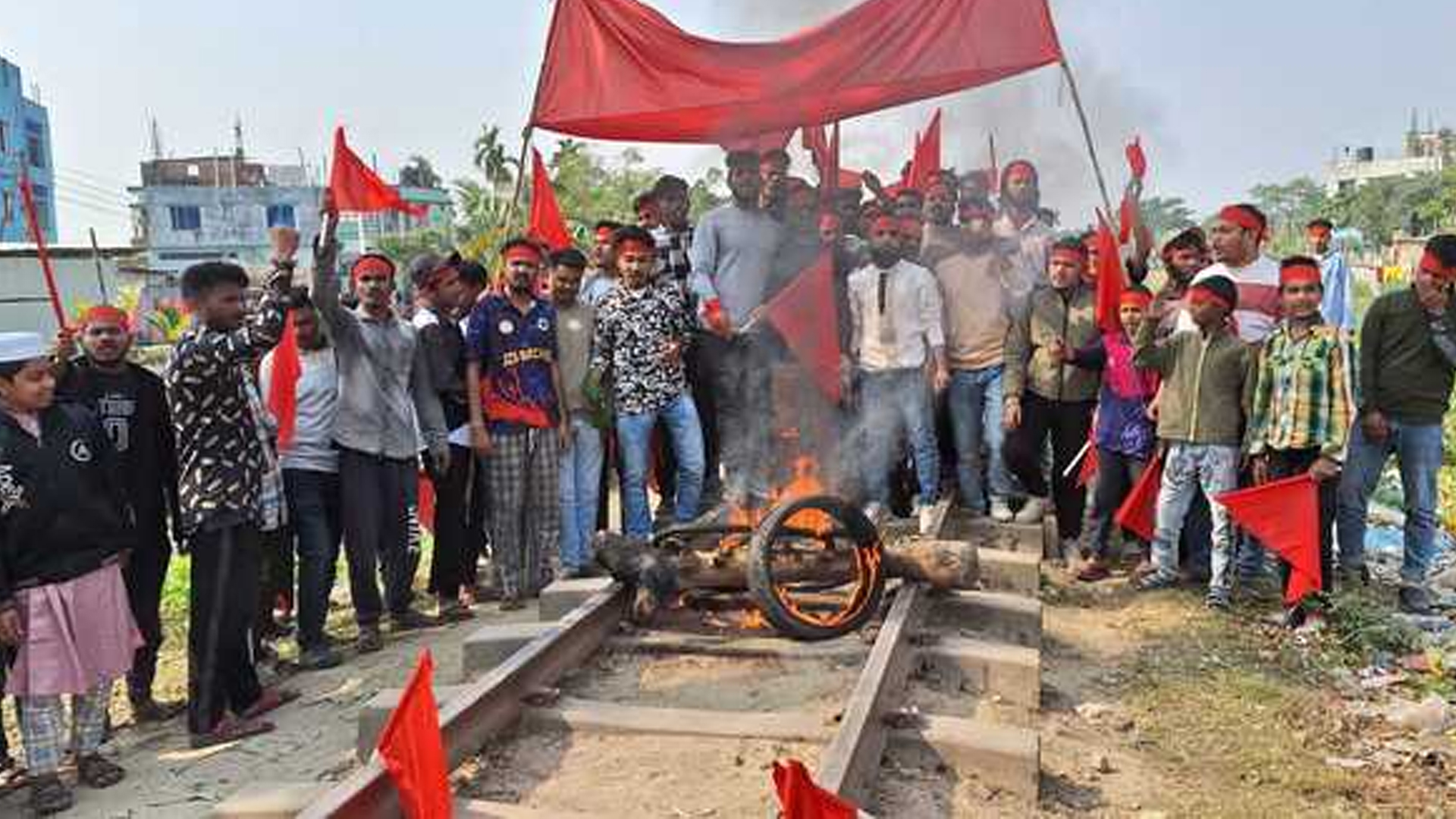 জামালপুরে পৌর ছাত্রদলের নবগঠিত কমিটি বাতিলের দাবিতে রেললাইনে আগুন জ্বালিয়ে বিক্ষোভ করেছেন দলটির পদবঞ্চিত নেতাকর্মীরা। এ সময় জামালপুর স্টেশনে ঢাকা থেকে ছেড়ে আসা দেওয়ানগঞ্জ গামী তিস্তা আন্তঃনগর ট্রেনটি প্রায় ৪০ মিনিট আটকা পড়ে।রোববার (১৮ জানুয়ারি) বেলা ১১টার দিকে ফিসারীজ এলাকায় জামালপুর-দেওয়ানগঞ্জ রুটের রেললাইনে আগুন জ্বালিয়ে হাতে লাল নিশান নিয়ে রেললাইনে বসে বিক্ষোভ করেন নেতাকর্মীরা।খবর পেয়ে জামালপুর সদর থানার পুলিশ ঘটনাস্থলে পৌঁছে পরিস্থিতি নিয়ন্ত্রণ করে। পরে ৪০ মিনিট পর দেওয়ানগঞ্জের উদ্দেশ্যে তিস্তা আন্তঃনগর ট্রেন ছেড়ে যায়।ছাত্রদের অভিযোগ, ফ্যাসিস্ট আওয়ামী লীগের সময়ে ছাত্রদলের ত্যাগী নেতাকর্মীদের বাদ দিয়ে নিষিদ্ধ ঘোষিত ছাত্রলীগের অনেককেই স্থান করে দিয়ে পৌর ছাত্রদলের কমিটি দেয়া হয়েছে।আরও পড়ুন: রেললাইন অবরোধ, ঢাকা-ময়মনসিংহে ট্রেন চলাচল বিঘ্নিতগত ২৪ ডিসেম্বর পৌর ছাত্রদলের নবগঠিত কমিটির অনুমোদন দেয়া হয়। এরপর থেকে মশাল মিছিল, সমাবেশ, সড়ক অবরোধসহ নানা কর্মসূচি পালন করছে পদবঞ্চিত নেতাকর্মীরা।ছাত্রদলের নেতাকর্মীরা বলেন, নবগঠিত কমিটি আগামী জাতীয় সংসদ নির্বাচনের আগে বাতিল করা না হলে আন্দোলন অব্যাহত থাকবে।এ বিষয়ে জামালপুর জেলা ছাত্রদলের সাবেক যুগ্ম আহ্বায়ক হাদিউর রহমান রাব্বী বলেন, ‘দীর্ঘ ১৭ বছর যে সব ছাত্রদলের নেতাকর্মীরা ফ্যাসিস্ট হাসিনার বিরুদ্ধে রাজপথে লড়াই সংগ্রাম করতে গিয়ে জেলজুলম, নির্যাতন হামলা মামলার শিকার হয়েছিলেন। আজ তাদের মূল্যায়ন না করে হাসিনার নিষিদ্ধ ছাত্রলীগের নেতাকর্মীদের দিয়ে ছাত্রদলের কমিটি দেয়া হয়েছে।’আরও পড়ুন: প্রার্থী পরিবর্তনের দাবিতে বিএনপি নেতাকর্মীদের ঢাকা-ময়মনসিংহ রেললাইন অবরোধতিনি আরও বলেন, ‘এর প্রতিবাদে আমরা আন্দোলন করছি। দলের চেয়ারম্যান তারেক রহমানের কাছে দাবি করছি আগামী জাতীয় সংসদ নির্বাচনের আগে নবগঠিত কথিত বিতর্কিত কমিটি ভেঙে দিয়ে নতুন কমিটি দেয়ার। যদি না দেয়া হয় আন্দোলন আরও তীব্র হবে।’জামালপুর সদর থানার ভারপ্রাপ্ত কর্মকর্তা(ওসি) মিজানুর রহমান বলেন, ‘পৌর ছাত্রদলের কমিটি বাতিলের দাবিতে ছাত্রদলের একাংশের নেতাকর্মীরা রেললাইনে আগুন জ্বালিয়ে রেলপথ অবরোধ করেন। খবর পেয়ে আমরা ঘটনাস্থলে গিয়ে পরিস্থিতি নিয়ন্ত্রণ করেছি।