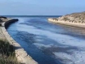 Lago Patria invaso da schiuma bianca, enorme scia fino al mare: “Rischio sversamenti inquinanti”