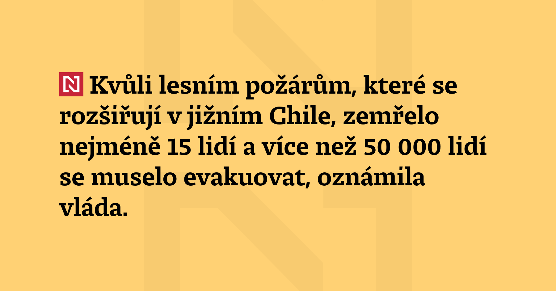 Kvůli lesním požárům, které se rozšiřují v jižním Chile, zemřelo nejméně 15 lidí a více než 50 000 lidí se muselo evakuovat, oznámila vláda. (AFP, France 24)