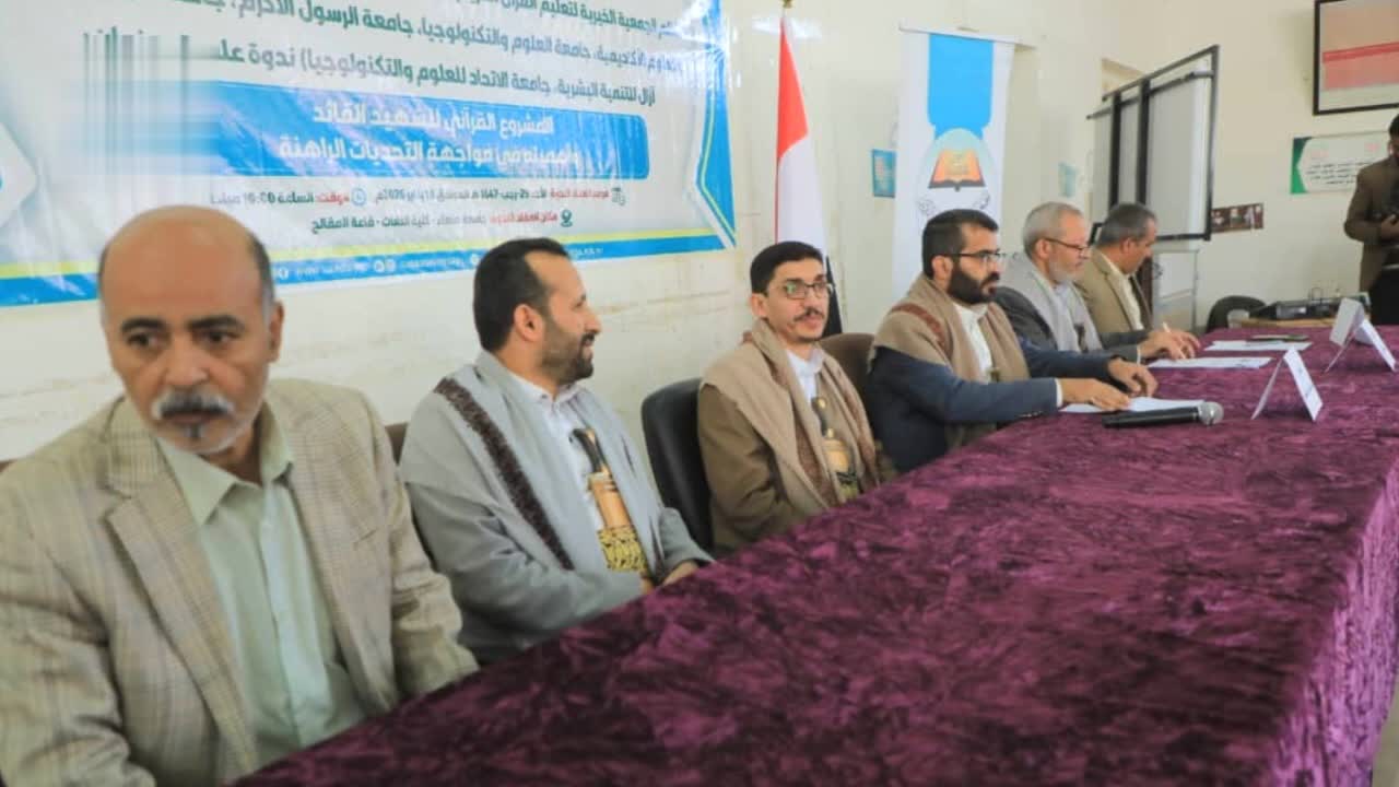 الثورة نت /.. نظمّت الجمعية الخيرية لتعليم القرآن الكريم، بالشراكة مع جامعات صنعاء، والقرآن الكريم، والعلوم الأكاديمية، والعلوم والتكنولوجيا، والرسول الأكرم، واليمن، وآزال والاتحاد، ندوة علمية بعنوان “المشروع القرآني للشهيد القائد وأهميته في مواجهة التحديات الراهنة. وفي افتتاح الندوة، التي حضرها وزير التربية والتعليم والبحث العلمي حسن الصعدي، عبر رئيس جامعة صنعاء الدكتور محمد البخيتي […]