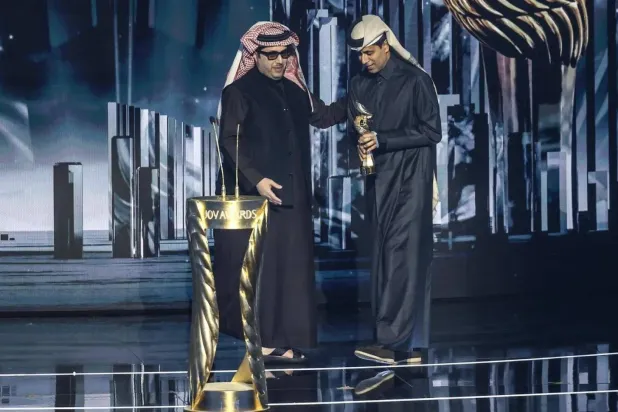 كرّم المستشار تركي آل الشيخ، رئيس الهيئة العامة للترفيه، ناصر الخليفي، وذلك بمنحه «جائزة صُنّاع الترفيه الماسية» ضمن حفل «جوي أووردز» في الرياض.
