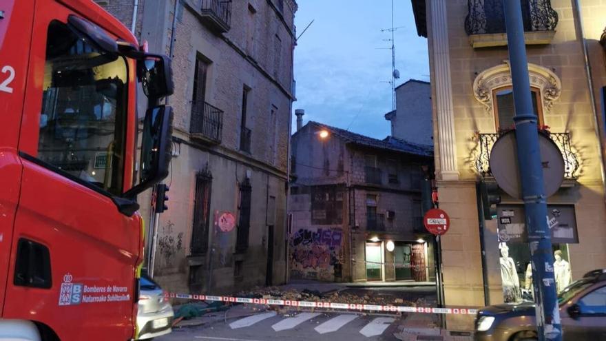 Susto este domingo por la tarde en Tafalla por el desprendimiento del alero de un tejado en pleno centro de la localidad. El derrumbe se ha producido en la calle Diputación Foral, una zona muy transitada, pero por suerte no ha habido que lamentar heridos.