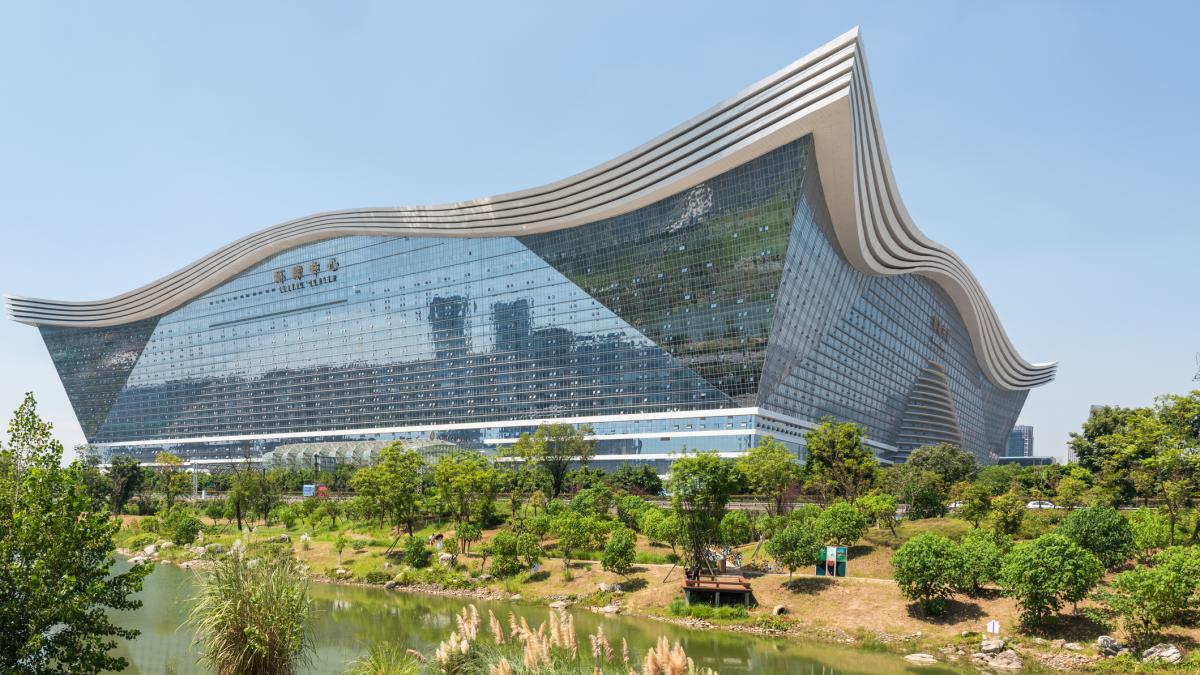 El edificio más grande del mundo está en China: con 1,76 millones de metros cuadrados, el New Century Global Center tiene 500 metros de largo, 400 metros de ancho, una playa y hasta un cielo artificial
