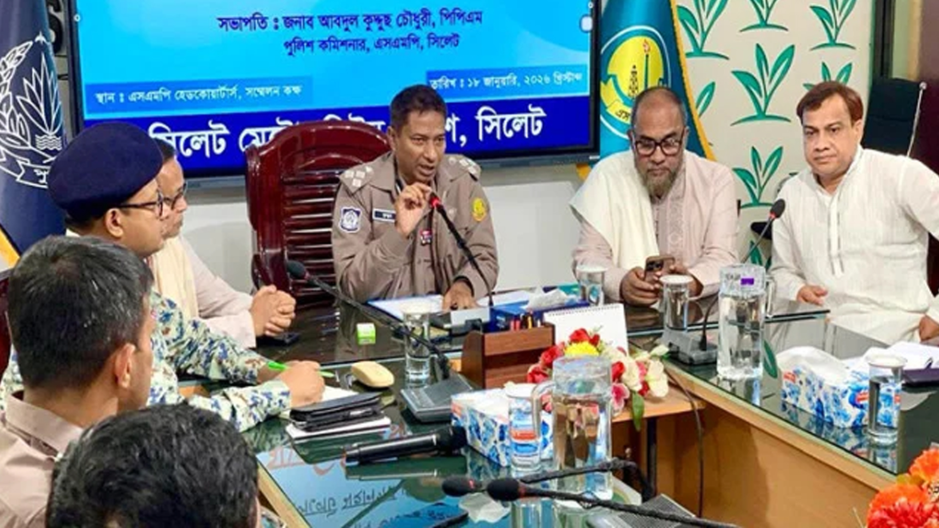 বিএনপির চেয়ারম্যান তারেক রহমানের সিলেট সফর এবং নির্ধারিত জনসভাকে কেন্দ্র করে রাজনৈতিক ও প্রশাসনিক প্রস্তুতি চূড়ান্ত পর্যায়ে রয়েছে। কর্মসূচি শান্তিপূর্ণভাবে সম্পন্ন করতে নিরাপত্তা ব্যবস্থা জোরদার করছে সিলেট মেট্রোপলিটন পুলিশ (এসএমপি)।লন্ডন থেকে দেশে ফেরার পর আগামী বৃহস্পতিবার (২২ জানুয়ারি) প্রথম ঢাকার বাইরে যাচ্ছেন তারেক রহমান। পুণ্যভূমি সিলেট সফর ও নির্ধারিত জনসভায় অংশ নেবেন তিনি। বিএনপির নেতার সিলেটে আগমন উপলক্ষে প্রস্তুতি শুরু করেছে বিএনপি। দলের প্রথম নির্বাচনী সভায় লাখো মানুষের সমাগম ঘটাতে উদ্যোগ নেয়া হচ্ছে। এদিকে তারেক রহমানের এই সফরের নিরাপত্তা নিয়ে রোববার (১৮ জানুয়ারি) বিকেলে একটি মতবিনিময় সভার আয়োজন করে সিলেট মেট্রোপলিটন পুলিশ (এসএমপি)। এসএমপি সদর দফতরের সম্মেলন কক্ষে আয়োজিত সভায় সিলেট জেলা ও মহানগর বিএনপির নেতৃবৃন্দ অংশ নেন। সভায় সভাপতিত্ব করেন এসএমপি কমিশনার আবদুল কুদ্দুছ চৌধুরী। সিলেট জেলা বিএনপির সভাপতি আব্দুল কাইয়ুম চৌধুরী, মহানগর বিএনপির ভারপ্রাপ্ত সভাপতি রেজাউল হাসান কয়েস লোদি এবং মহানগর বিএনপির সাধারণ সম্পাদক ইমদাদ হোসেন চৌধুরী সভায় বক্তব্য রাখেন। আরও পড়ুন: ৯০তম জন্মবার্ষিকী / কমল থেকে সফল রাষ্ট্রনায়ক জিয়াউর রহমান মতবিনিময়ে তারেক রহমানের আগমন ও সংশ্লিষ্ট কর্মসূচি ঘিরে আইনশৃঙ্খলা পরিস্থিতি স্বাভাবিক রাখা, জননিরাপত্তা নিশ্চিত করা, যানবাহন চলাচল নির্বিঘ্ন রাখা এবং কর্মসূচি শান্তিপূর্ণভাবে সম্পন্ন করার বিষয়ে আলোচনা হয়। এ সময় প্রশাসন ও রাজনৈতিক দলের মধ্যে সমন্বয় জোরদারের ওপর গুরুত্ব দেয়া হয়। এসএমপি সূত্র জানায়, কর্মসূচিকে কেন্দ্র করে সভাস্থল ও আশপাশের এলাকায় বহুস্তর নিরাপত্তা ব্যবস্থা নেয়া হবে। প্রবেশপথে চেকপোস্ট স্থাপন, মেটাল ডিটেক্টরের মাধ্যমে তল্লাশি, সিসিটিভি নজরদারি, সাদা পোশাকে গোয়েন্দা পুলিশের উপস্থিতি এবং দ্রুত প্রতিক্রিয়া দল মোতায়েন থাকবে। পাশাপাশি নগরীর যান চলাচল স্বাভাবিক রাখতে বিশেষ ট্রাফিক ব্যবস্থাও গ্রহণ করা হয়েছে। সভায় বাংলাদেশ পুলিশ ছাড়াও র্যাপিড অ্যাকশন ব্যাটালিয়ন (র্যাব), বর্ডার গার্ড বাংলাদেশ (বিজিবি), আনসার ও গ্রাম প্রতিরক্ষা বাহিনী (আনসার ও ভিডিপি), কাস্টমস ইন্টেলিজেন্স ও এনফোর্সমেন্ট, মাদকদ্রব্য নিয়ন্ত্রণ অধিদপ্তর (ডিএনসি) ও সিকিউরিটি সার্ভিসেস ডিভিশনসহ বিভিন্ন আইনশৃঙ্খলা ও নিরাপত্তা সংস্থার ঊর্ধ্বতন কর্মকর্তারা উপস্থিত ছিলেন। আরও পড়ুন: নারীরা সুযোগ পেলে জাতির ভবিষ্যৎ বদলে দেয়: প্রথম বক্তৃতায় জাইমা সভায় অংশ নেয়া রাজনৈতিক নেতারা শান্তিপূর্ণ কর্মসূচি বাস্তবায়নে দলীয় নেতাকর্মীদের সহযোগিতা নিশ্চিত করার কথা জানান। এ