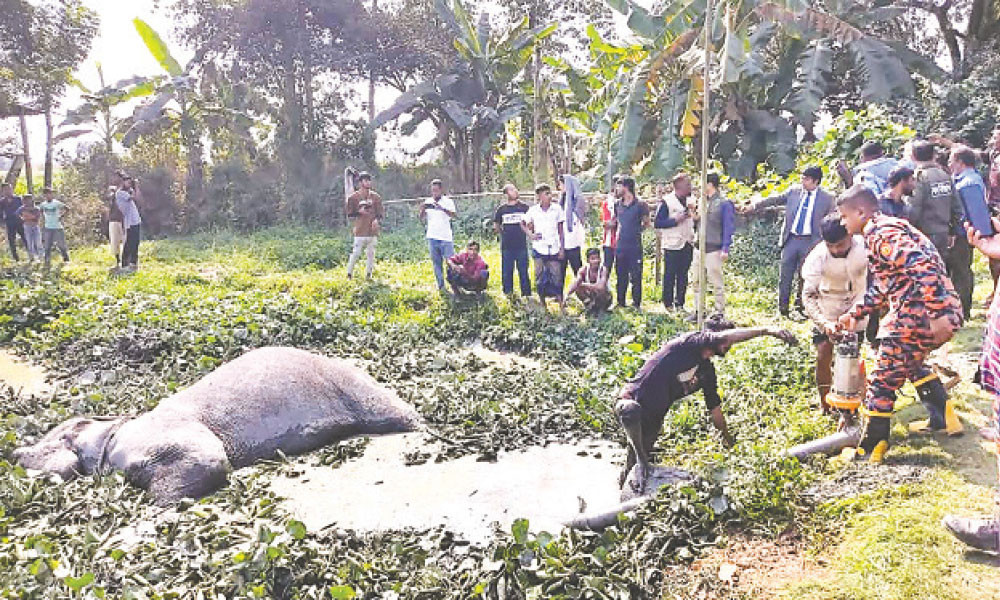 উদ্ধার শেষে হাতিটিকে চিকিৎসা দেওয়া হচ্ছে