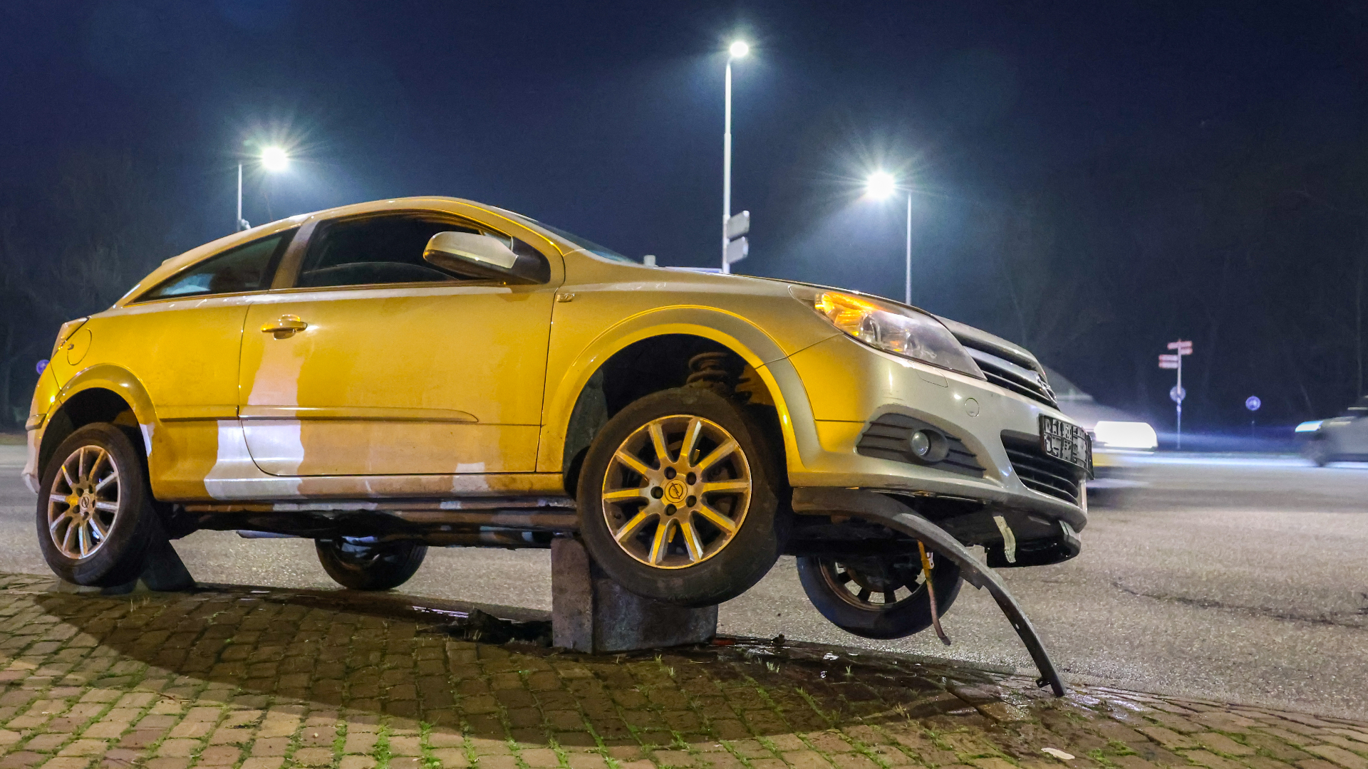 Een automobilist nam zondagavond een te korte bocht op de Terbregseweg i Rotterdam.
