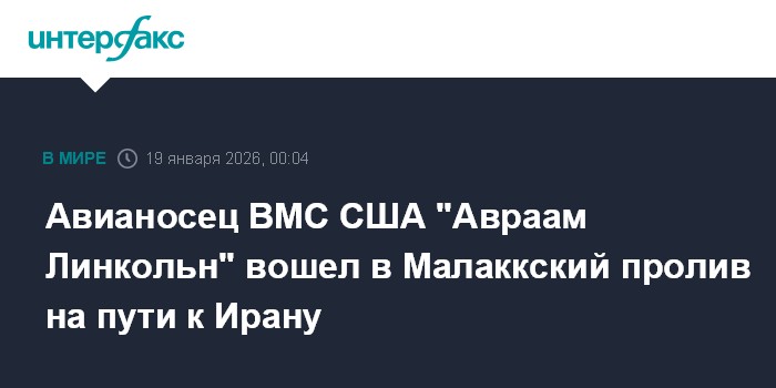 Авианосная ударная группа ВМС США во главе с атомным авианосцем USS Abraham Lincoln на фоне ситуации в Иране в воскресенье вошла в Малаккский пролив по пути на Ближний Восток, сообщает издание The Jerusalem Post.