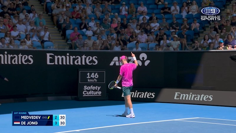 Watch the match highlights between Daniil Medvedev & Jesper de Jong in Round 1 of the 2026 Australian Open.