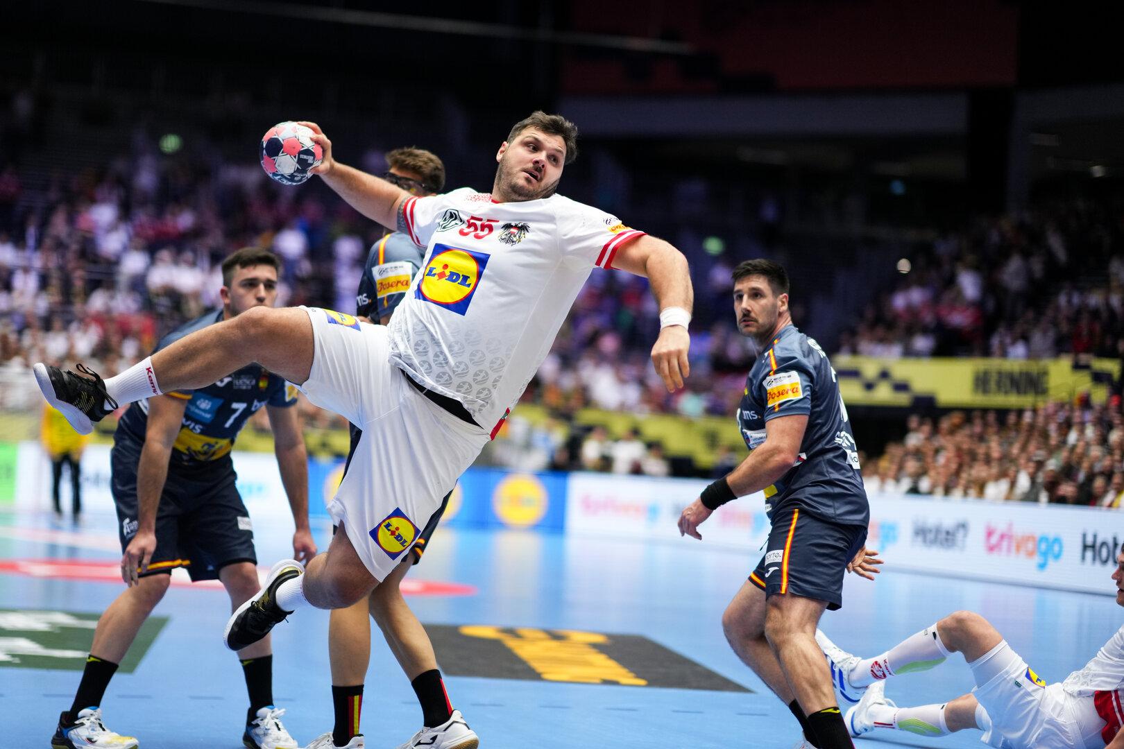 "Deutschland droht historisches EM-Debakel!“, titelte die Bild-Zeitung über das Vorrunden-Finale der Gruppe A bei der Europameisterschaft in Herning. Deutschland , der Vierte der EM 2024 und Olympia-Zweite, verlor am Samstagabend gegen Serbien 27:30 und eröffnet mit dem unerwarteten Punkteverlust auch Österreich noch die Möglichkeit auf die Hauptrunde. Diese schien nach der 25:30-Pleite gegen Spanien unerreichbar geworden zu sein. Sogar der ÖHB schrieb selbst: „Österreich unterliegt Spanien 25:30 und verpasst die Hauptrunde“. Doch das war vor der Niederlage der Deutschen. Am Montag kommt es in Herning also zum Finale in der Gruppe A. Erst trifft um 18 Uhr Österreich auf Serbien (ORF 1). Danach kommt es ab 20.30 Uhr zum vermeintlichen Spitzenspiel der Gruppe A zwischen Spanien und Deutschland . Österreichs Möglichkeit Österreich braucht für den Aufstieg in die Hauptrunde einen Sieg gegen Serbien mit mindestens vier Toren Differenz. Und dann muss Spanien Deutschland besiegen. Das alles ist nicht ausgeschlossen, aber nach der enttäuschenden Leistung des ÖHB-Teams gegen Spanien auch eher unwahrscheinlich. „Unser Ziel muss jetzt sein, gegen Serbien noch einmal voll anzugreifen“, betonte ÖHB-Sportdirektor Patrick Fölser . „Und dann werden wir sehen, zu was es reicht.“ Teamchef Iker Romero hatte am Sonntag alle Hände voll zu tun: „Unsere Enttäuschung ist groß. Aber wir haben keine Zeit. Am Montag haben wir ein ganz wichtiges Spiel. Ich muss mein Bestes geben, damit die Jungs wieder Kraft haben.“ Schließlich geht es für sein Team nicht nur um den Aufstieg in die Hauptrunde, sondern auch um den dritten Gruppenplatz, der die Vorqualifikation für die WM 2027 gegen Litauen ersparen würde. Österreichs Kreisläufer Tobias Wagner wusste, woran es bislang lag, dass keine Punkte geholt wurde: „In beiden Spielen waren einige dabei, die nicht ihre Topleistung gebracht haben. Gegen Deutschland war ich es. Wir brauchen jeden Spieler auf Topniveau.“ Lukas Hutecek betonte: „Wir haben alle das Gefühl, dass es langsam Zeit ist. Wir wollen unbedingt den Sieg gegen Serbien, wir haben keine Rechnerei im Kopf.“