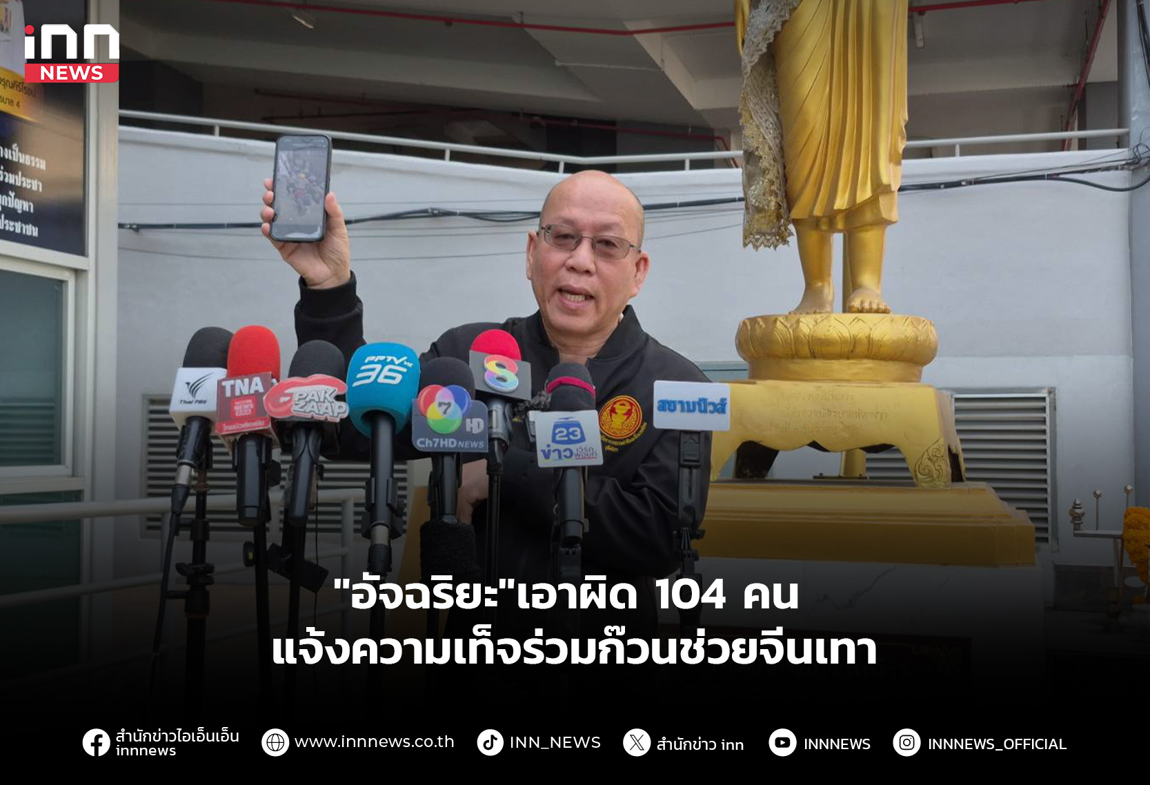 “อัจฉริยะ”แจ้งความเอาผิด 104 คนแจ้งความเท็จร่วมก๊วนช่วยจีนเทาพ้นห้องกัก ตม. จ่อแฉทั้งขบวนการ มีระดับผู้พิพากษาเอี่ยวด้วย