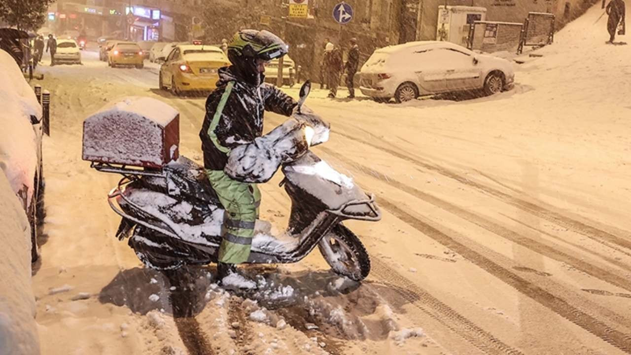Son dakika... İstanbul'da dün başlayan ve bugün de devam eden kar yağışı nedeniyle motokuryelerin ve ağır taşıtların trafiğe çıkışı yasaklandı.