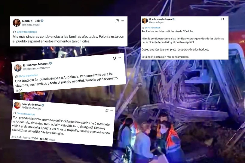 "Moje szczere kondolencje dla dotkniętych rodzin. Polska jest myślami z hiszpańskim społeczeństwem w tych trudnych chwilach" - napisał Donald Tusk. W niedzielę na południu Hiszpanii wykoleiły się dwa pociągi dużych prędkości. W katastrofie życie straciło co najmniej 21 osób, kilkadziesiąt zostało rannych. Do Hiszpanów zwrócili się także inni europejscy liderzy.