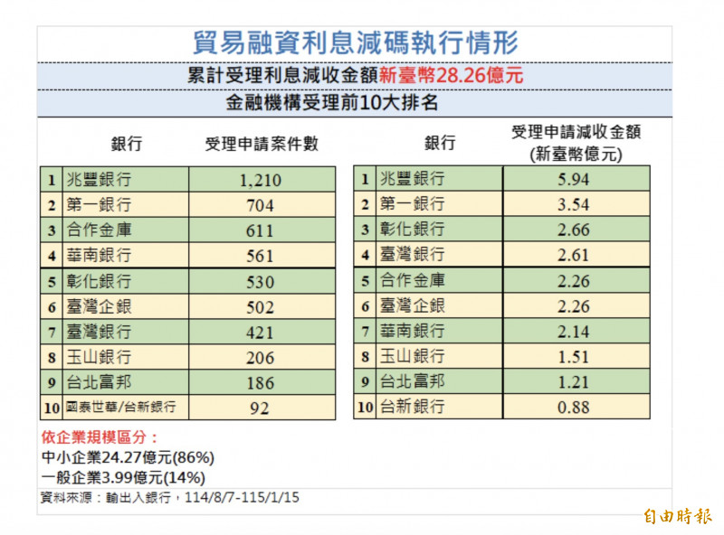 面對美國關稅對於傳統產業及中小企業帶來的衝擊,政府提前部署、主動出擊,推出「金融支持措施」,由輸出入銀行負責執行,其中,在「貿易融資利息減碼」部分,據統計,截至今年1月1...…