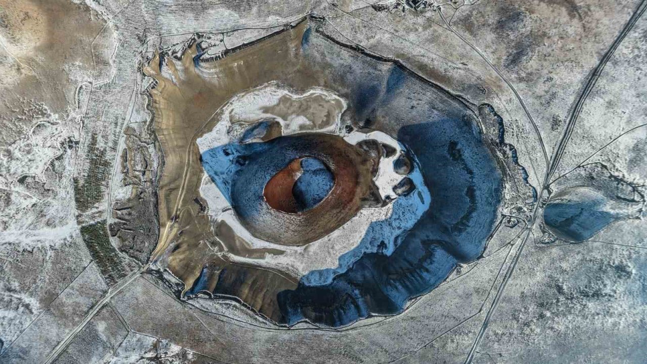 Kar yağışı, Konya'nın Karapınar ilçesinde doğayı beyaza bürüdü. Karla kaplanan Meke Gölü ortaya çıkan manzarasıyla hayran bıraktı.