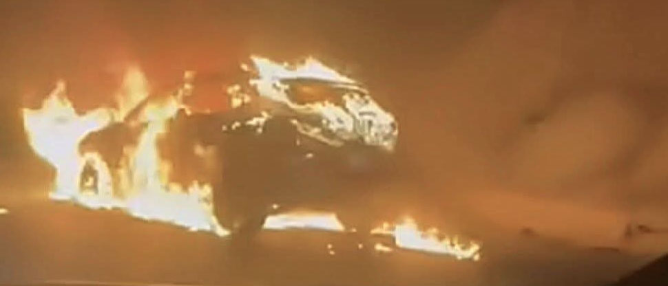 Vehículo es consumido por el fuego en carretera Los Chorros