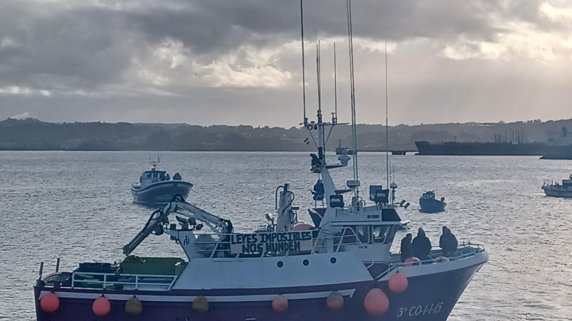 La pesca coruñesa se ha sumado a las protestas contra el nuevo reglamento de control que impone la Unión Europea. La jornada de este lunes ha visibilizado el descontento, con el cierre de las lonjas y el amarre de la flota de bajura, que ha hecho sonar sus bocinas durante una hora en el puerto. Desde el pasado 10 de enero, los barcos de más de 12 metros de eslora están obligados a registrar de forma electrónica todas sus capturas, un requisito que se extenderá a toda la flota para 2030. El sector considera que la medida es inasumible. Gustavo Chacartegui, patrón mayor de la cofradía de pescadores de Ferrol, ha explicado que, aunque están a favor del control, el problema es la exigencia de realizar el trabajo a bordo. "Aquí somos el patrón y un marinero normalmente. En Ferrol no hay ningún barco, por ejemplo, que lleve 3 tripulantes, con lo cual uno se tiene que destinar al pesaje", ha señalado. Chacartegui ha añadido que las condiciones del mar en Galicia complican enormemente la tarea. "Con un poco de mar, que por desgracia tenemos el 90% de los días, no podríamos pesar, es inviable". La norma obliga a pesar toda la mercancía, sea cual sea la especie, desde el primer kilo y comunicarlo dos horas y media antes de la llegada a puerto. "Teníamos que llevar a otra embarcación auxiliar para llevar un oficinista con todo lo que nos exige", ironiza. El incumplimiento de la normativa conlleva cuantiosas multas. Según ha detallado el patrón mayor, el margen de error permitido es de un 20% y "cada error son 3000 euros". Para demostrar la inviabilidad, se realizó un simulacro en un barco de una cofradía cercana. "Llegando a puerto, tenía 30.000 euros en multas, porque se equivocó en el pesaje de 10 especies", ha relatado. Desde el sector creen que estas medidas buscan su desaparición. "Es el momento de manifestarnos, porque creemos que sobramos. Quieren quitarnos, les interesarán las grandes multinacionales y no le interesamos la pesca artesanal en general en toda España", ha sentenciado Chacartegui. A esto se suma el peligro que los pesajes suponen para la tripulación y la obligación de avisar de la llegada a puerto con dos horas de antelación, algo que tachan de "absurdo" para barcos que faenan cerca de la costa. Advierte que la situación es límite y que estas complicaciones desaniman a los trabajadores. "Lo que hacen es complicar más el trabajo, que la gente cada vez salga con menos ganas al mar", lamenta. Considera que la burocracia puede llevar a que la pesca a pequeña escala deje de ser rentable, provocando que algún compañero "la descartará, porque le va a dar más problemas pesar tres fanecas que el beneficio que le va a dar". La protesta, que comenzó en el Parrote, ha contado con el apoyo de representantes políticos como el presidente de la Autoridad Portuaria, Martín Fernández Prado; el alcalde de Oleiros, Ángel García Seoané, y el diputado nacionalista Néstor Rego. El BNG ha anunciado que pedirá "una flexibilización de las condiciones" o una "moratoria de aplicación de este reglamento". Néstor Rego ha insistido en que es preciso "diferenciar claramente la flota artesanal de la flota industrial" y ha manifestado el "total apoyo a las movilizaciones" del sector. Tras la concentración en el puerto, los pescadores se han trasladado a las puertas de la delegación del Gobierno en Galicia, donde continuaron la protesta con silbatos y cacerolas bajo el lema "En Loita".