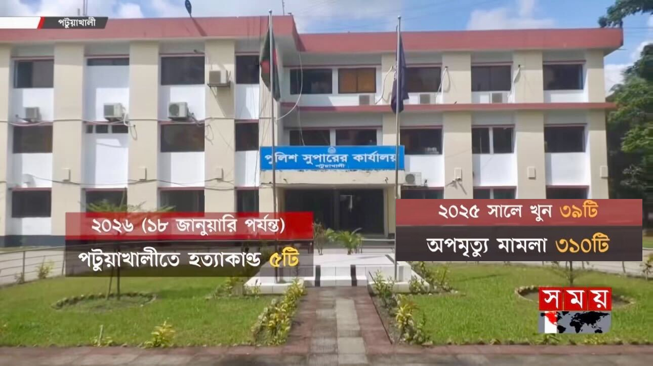 পটুয়াখালীতে একের পর এক হত্যাকাণ্ড ও সহিংস ঘটনায় উদ্বেগ বাড়ছে সাধারণ মানুষের মধ্যে। উপকূলীয় এই জেলায় চলতি মাসেই সংঘটিত হয়েছে পাঁচটি চাঞ্চল্যকর হত্যাকাণ্ড। পুলিশের হিসাব অনুযায়ী, গত এক বছরে জেলায় খুন ও অপমৃত্যুর মামলা হয়েছে সাড়ে তিনশোরও বেশি। সাম্প্রতিক এসব ঘটনায় জননিরাপত্তা নিয়ে নতুন করে প্রশ্ন উঠেছে। সামনে জাতীয় নির্বাচন থাকায় আইনশৃঙ্খলা পরিস্থিতি নিয়েও শঙ্কা প্রকাশ করছেন স্থানীয় সচেতন মহল।৩১ ডিসেম্বর সন্ধ্যায় পটুয়াখালী শহরের পানি উন্নয়ন বোর্ডের নির্বাহী প্রকৌশলীর কার্যালয়ের সামনে নির্মাণাধীন একটি ভবনের নিচে নাহিদ নামের এক তরুণকে প্রকাশ্যে মারধর করা হয়। সিসিটিভি ফুটেজে দেখা যায়, সাত থেকে আটজন যুবক ক্রিকেট ব্যাট ও স্ট্যাম্প দিয়ে তাঁকে বেধড়ক পেটাচ্ছেন। পরে রিকশায় তুলে তাঁকে অন্যত্র নিয়ে গিয়ে দ্বিতীয় দফায় মারধর করা হয়। মুমূর্ষু অবস্থায় ফেলে রেখে চলে যান হামলাকারীরা। দুদিন পর ২ জানুয়ারি হাসপাতালে চিকিৎসাধীন অবস্থায় মারা যান নাহিদ।এই ঘটনার রেশ কাটতে না কাটতেই ৪ জানুয়ারি রাঙ্গাবালী উপজেলার মাঝনেতা গ্রামে নিজ বাড়ির রান্নাঘরের বারান্দা থেকে স্কুলছাত্রী আয়েশা মনির বস্তাবন্দি মরদেহ উদ্ধার করে পুলিশ। পুলিশ জানায়, শ্বাসরোধে হত্যার পর মরদেহ গুম করতে বস্তাবন্দি করে রাখা হয়েছিল।এর পরদিন, ৫ জানুয়ারি, পর্যটন কেন্দ্র কুয়াকাটার একটি ভাড়া বাসা থেকে আরিফা আক্তার নামের এক গৃহবধূর গলাকাটা মরদেহ উদ্ধার হয়। পরপর দুই দিনের এই দুটি হত্যাকাণ্ডে পুরো জেলাজুড়ে আতঙ্ক ছড়িয়ে পড়ে।৮ জানুয়ারি রাতে পটুয়াখালী সদর উপজেলার বদরপুর ইউনিয়নের গাবুয়া এলাকায় বাজার করে বাড়ি ফেরার পথে মো. বশির শরীফ নামে এক যুবককে কুপিয়ে হত্যা করে দুর্বৃত্তরা। হত্যার পর মরদেহ সড়কে ফেলে রেখে যায় তারা। সবশেষ ১১ জানুয়ারি দুপুরে কলাপাড়া উপজেলার মিঠাগঞ্জ ইউনিয়নের সাপুড়িয়া খালের পাড় থেকে ফেরদৌস মুন্সী নামের এক যুবকের মরদেহ উদ্ধার করে পুলিশ। হত্যার পর মরদেহ মাটিতে পুঁতে রাখা হয়েছিল বলে জানায় পুলিশ। এর দুই দিন আগে অসুস্থ বাবাকে দেখতে গিয়ে তিনি নিখোঁজ হয়েছিলেন।হত্যাকাণ্ডের পাশাপাশি পটুয়াখালীতে ছিনতাই, চাঁদাবাজি ও প্রকাশ্যে মারধরের ঘটনাও বাড়ছে। এতে করে সাধারণ মানুষের মধ্যে নিরাপত্তাহীনতা আরও গভীর হয়েছে। অনেকেই সন্ধ্যার পর চলাচলে সতর্কতা অবলম্বন করছেন।আরও পড়ুন: ভবঘুরের আড়ালে ভয়ংকর এক খুনি, ছদ্মবেশে ‘ছয় হত্যা’সচেতন নাগরিক কমিটি (সনাক) পটুয়াখালী জেলা সভাপতি অ্যাডভোকেট শহিদুর রহমান বলেন, জেলার সাম্প্রতিক খুন ও সহিংসতার ধারাবাহিকতা উদ্বেগজনক। তিনি বলেন, আইনের শাসন প্রতিষ্ঠা করতে হলে অপরাধ সংঘটনে
