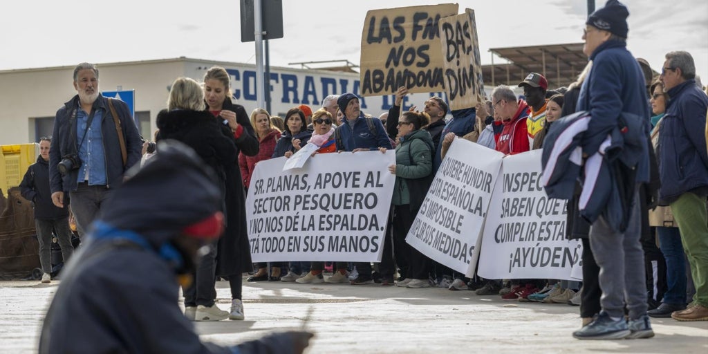 La flota pesquera formada por medio millar de barcos en la Comunidad Valenciana está amarrada este lunes y el martes y dejará sin mercancía fresca del Mediterráneo a las lonjas buena parte de esta semana en protesta por la nueva normativa de la Unión Europea . Exigen que el Gobierno frene estas exigencias que hacen inviable su actividad. «Sr. Planas , apoye al sector pesquero, no nos dé la espalda , está todo en sus manos», clamaban en una pancarta durante una de las manifestaciones , en Santa Pola (Alicante), para señalar al ministro de Agricultura, Pesca y Alimentación y que presione a las autoridades comunitarias. Tal como han expuesto varios portavoces de cofradías de los principales puertos alicantinos, castellonenses y valencianos, el nuevo protocolo de trabajo mina su rentabilidad hasta el punto de plantearse abandonar para siempre. Estas normas están pensadas para grandes barcos de congelado que operan con una tripulación numerosa, tres capitanes y suficiente personal a bordo para realizar estos recuentos continuos de las capturas y los pesajes. Además, este tipo de pesca implica salidas para varios días. Nada que ver con la realidad de arrastre y cerco en la actividad más artesanal del Mediterraneo , donde salen y regresan el mismo día y no se pueden permitir dedicar a un trabajador sólo para «tomar notas», además del riesgo de estar pendiente del «ordenador» y no vigilar la navegación. Sin contar con horas de espera antes de llegar a puerto para comunicar con la antelación exigida la información de esos datos de la carga. Uno de los portavoces de las federaciones de cofradías ha llegado a interpretar que en la UE se proponen «acabar con el sector primario», empujarles a la desaparición. Primero les redujeron las jornadas autorizadas para faenar y ahora estos requisitos inasumibles , a su juicio. «No sé si podremos conseguir algo, pero por lo menos que nos den una moratoria o que el aviso previo lo dejen en media hora que es el tiempo que solemos tardar en entrar a puerto», han señalado desde la federación alicantina. «Tenemos que hacer el preaviso cuatro horas antes de la entrada a puerto y los barcos el caladero lo tienen a 30 minutos, no pudiendo saber el pescado que tienen en el arte hasta 30 minutos antes, cualquier error en el cálculo de lo que no han sacado del agua, sólo con un error del 10%, representará una sanción de 3.000 euros y la pérdida de las ayudas de ese año», explican, como detalles que evidencian ese rigor desproporcionado. «Vamos a salir a por multas, no a pescar», ha resumido otro representante del gremio, que este lunes aspira a encontrar respaldo del Gobierno frente Europa.