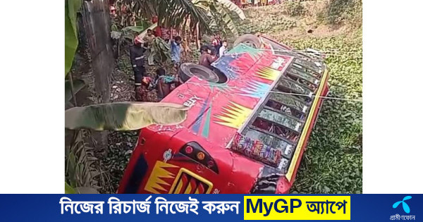 যাত্রীবাহী বাস উল্টে খালে, আহত ১৭