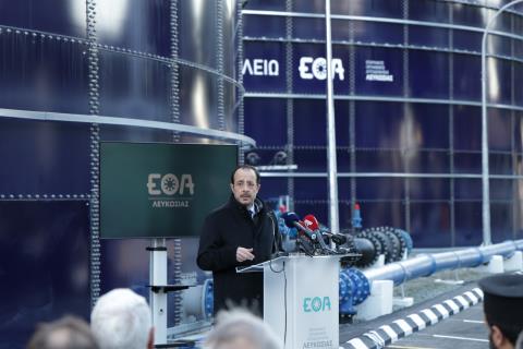 Ο στόχος μας μέσα από συγκεκριμένες ενέργειες είναι να πετύχουμε υδατική ασφάλεια στη χώρα μας, δήλωσε τη Δευτέρα ο Πρόεδρος της Δημοκρατίας, Νίκος Χριστοδουλίδης στην τελετή εγκαινίων των δύο υδατοδεξαμενών τύπου GLS του ΕΟΑ Λευκωσίας, την "Κλειώ" και την "Ερατώ", συνολικής χωρητικότητας 17,200 κυβικών μέτρων. Αναφερόμενος στα σχέδια για την υλοποίηση υδατικών έργων για την περίοδο 2024-2030 πέραν των 200 εκατομμυρίων ευρώ, ο Πρόεδρος Χριστοδουλίδης επεσήμανε και την ανάγκη ανάπτυξης υδατικής συνείδησης, καθώς, όπως είπε, η κατανάλωση νερού στην Κύπρο είναι μία από τις υψηλότερες από όλα τα κράτη-μέλη της ΕΕ, με κάποιες περιοχές να ξεπερνούν τα 500 λίτρα ανά άτομο ημερησίως. Παρούσα στην τελετή ήταν και η Υπουργός Γεωργίας, Αγροτικής Ανάπτυξης και Περιβάλλοντος, Μαρία Παναγιώτου. Στην ομιλία του, ο Πρόεδρος Χριστοδουλίδης σημείωσε ότι αυτό το έργο είναι «καθοριστικής στρατηγικής σημασίας» για τη Λευκωσία. «Είναι σημαντικό ότι με την ολοκλήρωση του έργου η υδατική επάρκεια της Λευκωσίας αυξάνεται ουσιαστικά, καλύπτοντας τις ανάγκες για περισσότερες από 36 ώρες ακόμη και σε περίπτωση διακοπής της υδροδότησης», πρόσθεσε. Σημείωσε ότι είναι επίσης σημαντικό το ότι η έμπνευση από τους αρμόδιους για αυτό το έργο ξεκίνησε «πριν να έχουμε ενώπιον μας την υδατική κρίση, τα προβλήματα, τις προκλήσεις που αντιμετωπίζουμε σήμερα». Σύμφωνα με τον Πρόεδρο Χριστοδουλίδη, οι δύο δεξαμενές «ενισχύουν σημαντικά τη δυνατότητα αποθήκευσης και ασφαλούς παροχής νερού σε μια περιοχή με πολύ αυξημένες ανάγκες και αναμφίβολα, οι δυνατότητες που προκύπτουν σε μια εποχή ακραίων καιρικών φαινομένων και λειψυδρίας αποτελούν ζήτημα ασφάλειας, ζήτημα αυτονομίας, ζήτημα ανθεκτικότητας». Σημείωσε ότι η Κύπρος, ως ένα νησιώτικο κράτος, «βρίσκεται σε μια από τις πιο επηρεαζόμενες περιοχές του πλανήτη όσον αφορά τις επιπτώσεις της κλιματικής κρίσης». Επιστημονικές σχετικές μελέτες, είπε, «έχουν δείξει ότι η περιοχή μας καταγράφει αύξηση της μέσης θερμοκρασίας με ταχύτερους ρυθμούς από τον παγκόσμιο μέσο όρο, ενώ από τα μέσα του 1990 παρατηρείται σταθερή μείωση της μέσης ετήσιας βροχόπτωσης στη χώρα μας μεταξύ 10% και 15% σε σύγκριση με τον 20ο αιώνα». «Οι περίοδοι ανομβρίας είναι συχνότερες», είπε, σημειώνοντας ότι το υδρολογικό έτος 2024-2025 συγκαταλέγεται στα πιο ξηρά για την Κύπρο από το 1902. «Αντιλαμβάνεστε ότι στη βάση αυτών των αρνητικών δεδομένων η διαχείριση του υδατικού δεν μπορεί παρά να είναι ψηλά στις προτεραιότητες μας και μέσα στο ίδιο πλαίσιο και σε συνεννόηση και με την Ευρωπαϊκή Ένωση ενόψει και της Προεδρίας, το θέμα του νερού, της υδατικής ασφάλειας έχει ενταχθεί στις κεντρικές προτεραιότητες της Προεδρίας μας», πρόσθεσε. «Ο στόχος μας μέσα από συγκεκριμένες ενέργειες είναι να πετύχουμε αυτό που προανέφερα, υδατική ασφάλεια στη χώρα μας», είπε. «Πρώτον, με αύξηση της διαθέσιμης ποσότητας νερού μέσω μη συμβατικών πηγών. Δεύτερον, την βελτίωση και την επέκταση των υποδομών αποθήκευσης και μεταφοράς. Και τρίτον, τη μείωση της ζήτησης», πρόσθεσε. Σε σχέση με την αύξηση των διαθέσιμων ποσοτήτων νερού μέσω μη συμβατικών πηγών, ανέφερε ότι η Κυβέρνηση κατά κύριο λόγο επενδύει σε κινητές και μικρές αφαλατώσεις ενώ  παράλληλα τερματίστηκε η προηγούμενη πολιτική της εφεδρικής χρήσης αφαλατώσεων, δηλαδή να σταματά η λειτουργία των αφαλατώσεων όταν υπήρχε βροχό