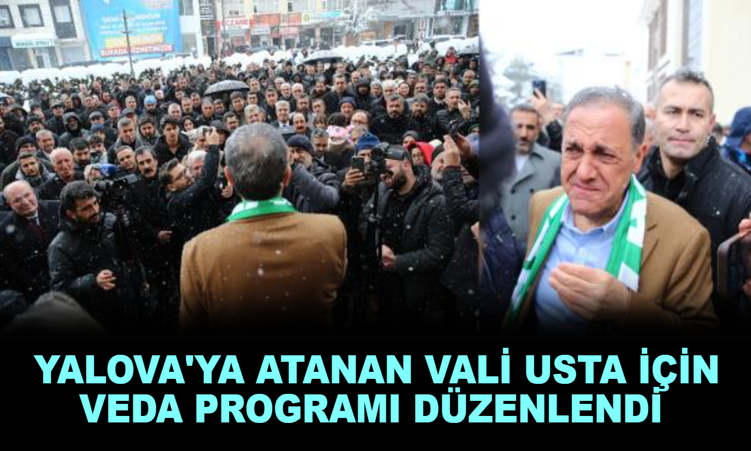 Resmi Gazete'de yayımlanan Valiler Kararnamesi'yle Bingöl'den Yalova'ya atanan Vali Ahmet Hamdi Usta için kar yağışı altında veda programı gerçekleştirildi.