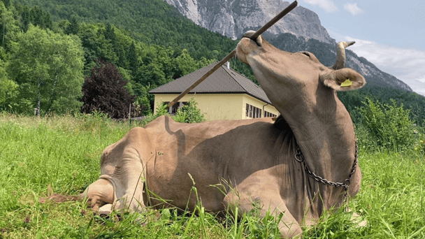 Домашня корова з Австрії Вероніка вразила вчених: вона підбирає палички ртом і використовує їх для чесання різних ділянок тіла.